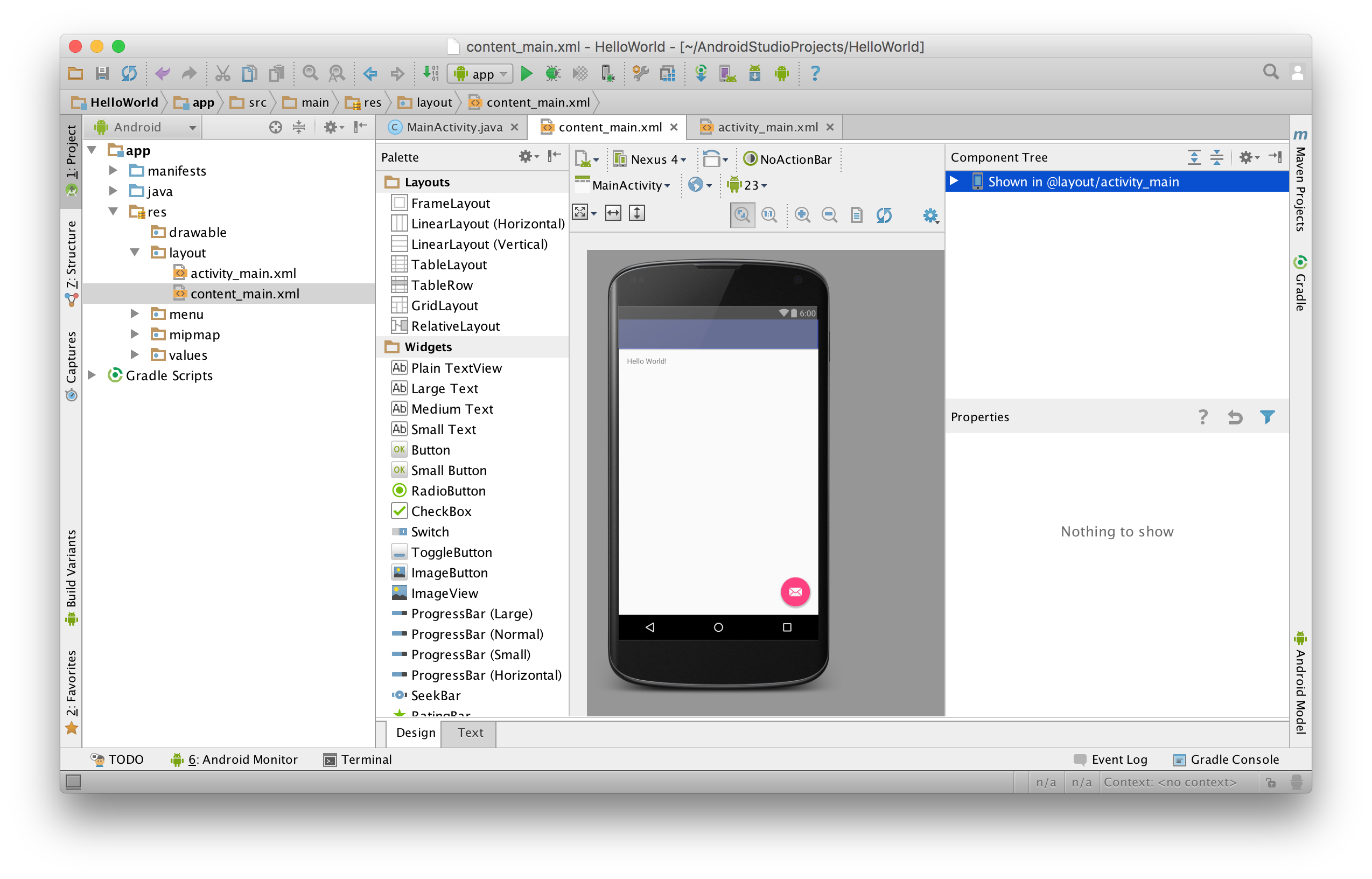 In keeping with tradition, we’ll call our first app “HelloWorld”. Google has provided a walk-through for their own version of Hello World app, but we're going to build our own.