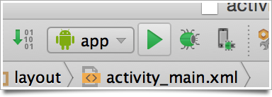 At this point we have the framework in place for a complete Android application. In fact, we already have an application that will actually run! I realize that you may not understand a good portion of what you're looking at yet, and that's OK for now. Remember, one of our goals at this point is to make sure everything runs properly...so let's run this app! Click on the green 'Run' icon in the menu bar (the Play button beside the bug).